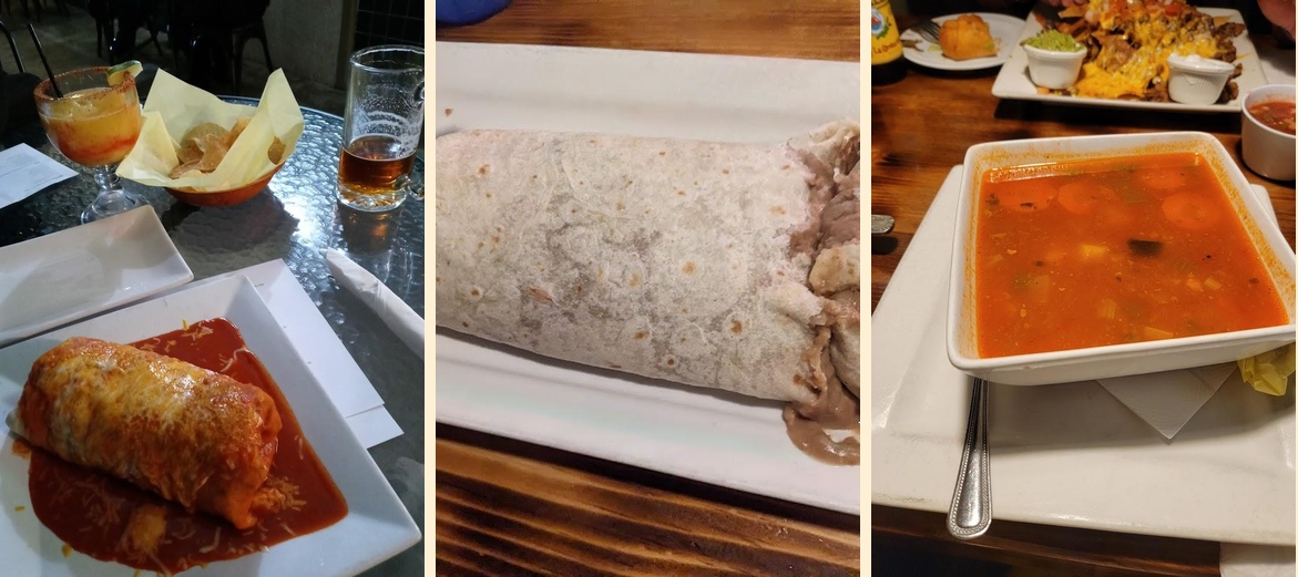 Must-try dishes include tacos al asada, carnitas, and specialty burritos like the Supreme California Burrito. Don't miss out on their unique desserts like Chocotaco and Bunuelos with Ice Cream.
